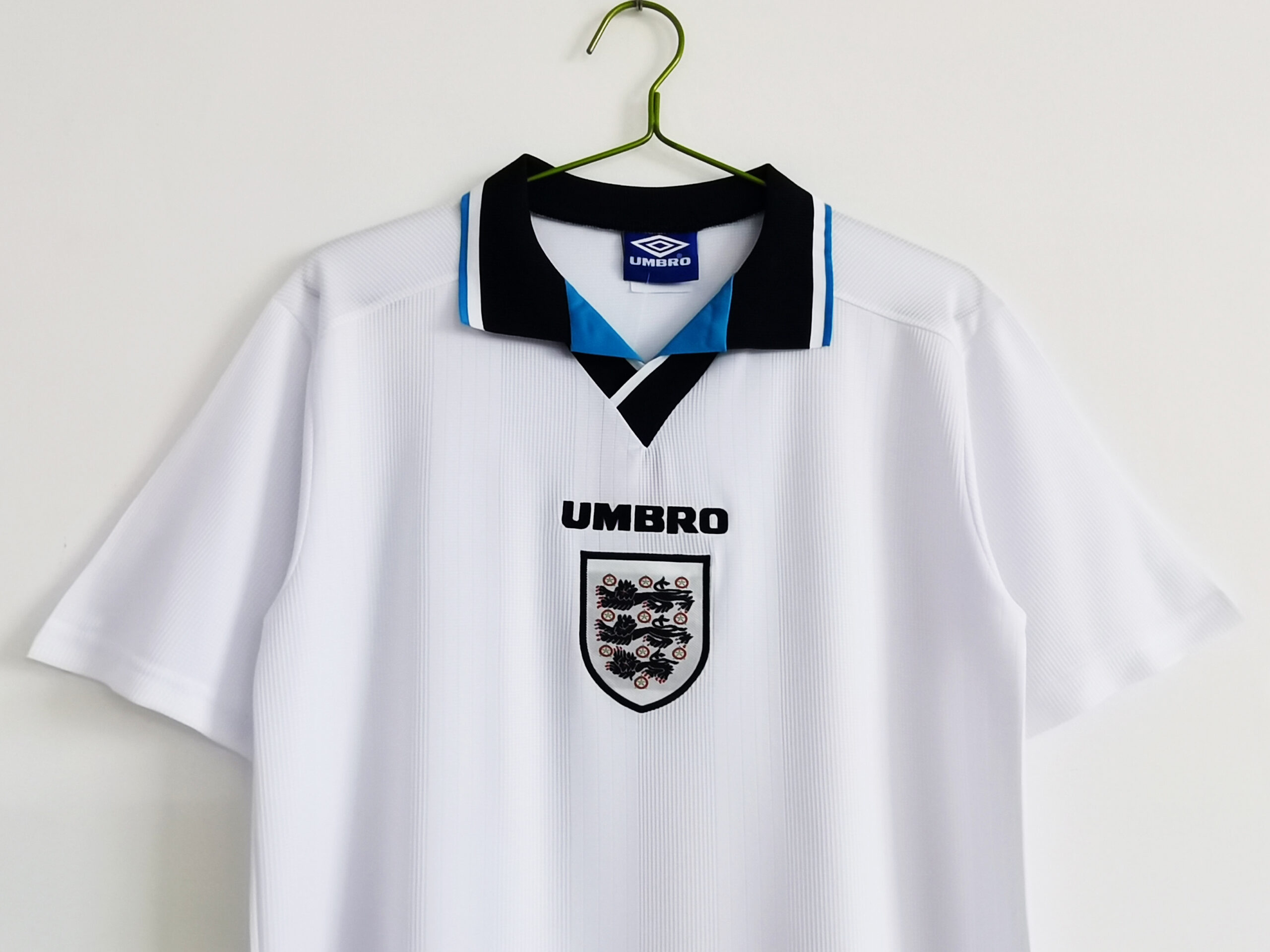 Worn by legendary players such as Alan Shearer, Paul Gascoigne, Teddy Sheringham, and captain Alan Shearer, this jersey recalls England’s remarkable run to the semi-finals. Fans will never forget Gazza’s emotional tears after his stunning goal against Scotland, or the dramatic penalty shootout heartbreak against Germany. Euro ’96 reignited national pride, uniting supporters and leaving a lasting legacy in English football history.